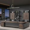 مكتب إداري بتصميم أبيض عصري يجمع بين الأناقة والبساطة، مناسب للمكاتب الراقية التي تركز على المظهر العصري والنظيف. المكتب مزود بوحدة جانبية عملية لتخزين الملفات والأغراض المكتبية، مع كراسي ضيافة بلون أبيض ولمسة رمادية أنيقة تضيف لمسة مهنية راقية.